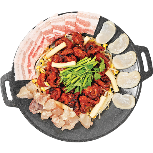 한 판으로 4명까지 즐기는 푸짐한 철판요리,