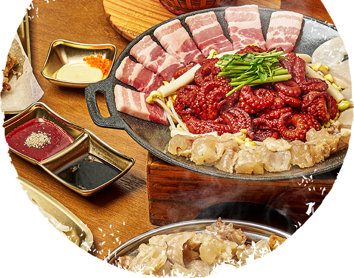 쭈꾸미 · 스지 · 묵은지 철판요리의 독창적 조합이